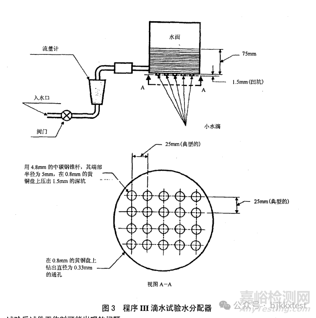 程序3適用于通常能防雨,但可能暴露于由于冷凝或上表面泄漏而產(chǎn)生滴水的裝備。滴水試驗(yàn)有兩個(gè)變量: