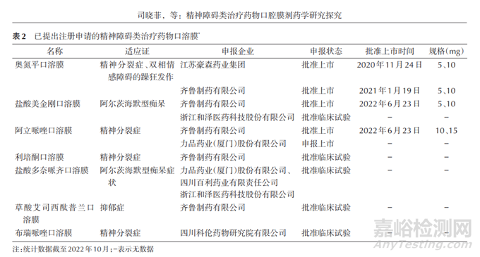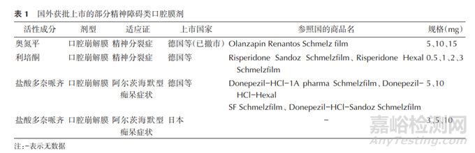 精神障礙類治療藥物口溶膜國內(nèi)外上市和申報情況