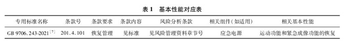 若GB9706.1-2020相關(guān)的專用標準已經(jīng)規(guī)定了具體的基本性能,注冊申請人需在注冊申報資料中提供基本性能與相應(yīng)專用標準要求的對應(yīng)表,說明標準符合性,示例見表1。