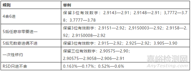 一般來說,分析工作者習(xí)慣采用“四舍五入”修約規(guī)則,不過在分析中逢五就進(jìn),必然會造成結(jié)果的系統(tǒng)偏高,誤差偏大,為了避免這樣的狀況出現(xiàn),盡量減少因修約而產(chǎn)生的誤差,一般采用四舍六入五留雙的修約規(guī)則: