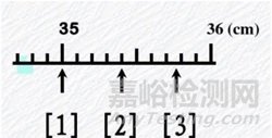 圖中“1”記錄為35.00cm,而不能記錄35cm,圖中“2”記錄為35.40cm,圖中“3”可記錄為35.75cm。