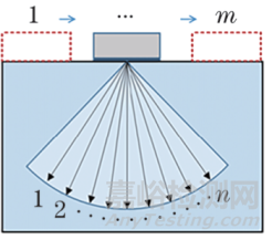 列車車軸鑲入部缺陷超聲檢測原理如圖1所示,采用扇形掃描的方式對車軸進行一周的全面檢查。