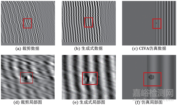 數(shù)據(jù)集由CIVA仿真數(shù)據(jù)、GAN網(wǎng)絡生成式數(shù)據(jù)和原始實際車軸缺陷超聲檢測數(shù)據(jù)混合組成,其中包括尺寸在0.5 mm以內的微小缺陷。由于缺陷樣本數(shù)量有限,采用GAN網(wǎng)絡生成式、CIVA仿真和剪裁等方法進行了數(shù)據(jù)擴充。