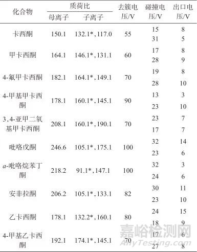 Tab. 2 Monitoring ions and analysis parameters of ten cathinones new psychoactive substances