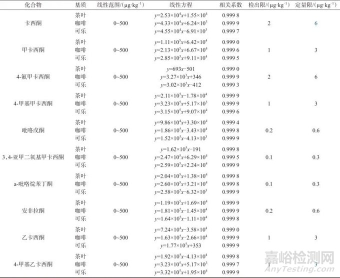 Tab. 4 Linear regression equations,correlation coefficients LOD and LOQ of ten cathinones new psychoactive substances