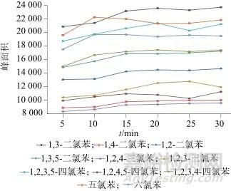 氯苯類化合物包括一氯苯、1,3-二氯苯、1,4-二氯苯、1,2-二氯苯、1,3,5-三氯苯、1,2,4-三氯苯、1,2,3-三氯苯、1,2,4,5-四氯苯、1,2,3,5-四氯苯、1,2,3,4-四氯苯、五氯苯、六氯苯12種物質(zhì)。生活飲用水中氯苯類化合物的來源主要有兩類,一是工業(yè)中超標(biāo)排放的廢水,二是工業(yè)排放的廢氣、機動車尾氣以及加裝裝飾材料中使用的有機溶劑等揮發(fā)的氣體,這些氣體進入空氣中隨雨水的降落進入水體,從而造成了飲用水的污染。在我國湖南省和北京市附近的土壤以及太湖的沉積物中均檢測出了氯苯類化合物,而珠江三角洲地區(qū)部分土壤中氯苯類化合物的含量更是達到了19 mg/kg左右[1]。氯苯類化合物對人體的皮膚、結(jié)膜和呼吸器官有刺激作用,且可在人體內(nèi)蓄積,抑制神經(jīng)中樞,損害肝臟和腎臟,甚至可能誘發(fā)白血病、淋巴瘤等惡性疾病[2]。