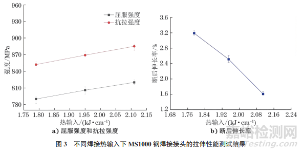 3.1 焊接熱輸入對焊接接頭拉伸性能的影響