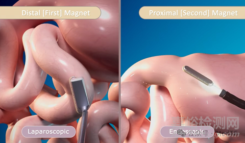 MagDI一種先進(jìn)的吻合技術(shù),由兩個(gè)磁性吻合器、一個(gè)輸送系統(tǒng)以及一個(gè)輔助磁鐵組成。