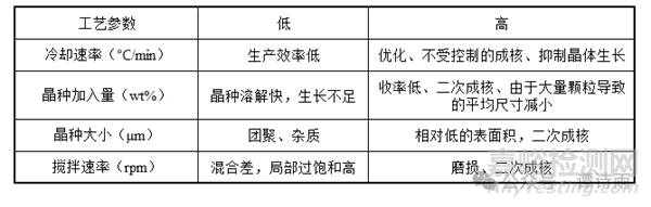 較小的晶種通常提供較大的表面積,在成核抑制方面具有更好的性能。晶種尺寸比晶種負荷對冷卻時間的影響更大,優(yōu)選窄分布的晶種尺寸。