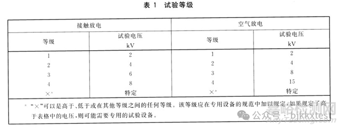 備注:接觸放電使用的放電接觸是尖頭的,空氣放電使用的接觸頭是圓頭的。