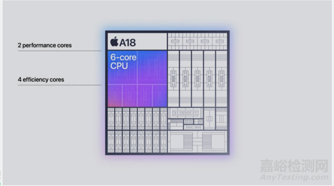 蘋果仍在使用六核 CPU,其中包括兩個高性能內(nèi)核和四個高效內(nèi)核,但蘋果表示,“更大的緩存”和“下一代 ML 加速器”將使其性能略高于普通 A18 中的內(nèi)核。蘋果表示,CPU 性能應(yīng)該比 A17 Pro 快 15% 左右。
