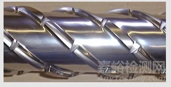 CRD 螺桿的混合部分采用多螺紋,右旋方向。因此,該混合器具有正向泵送能力?;旌献饔檬峭ㄟ^在螺紋上加工槽來實現(xiàn)的。槽是錐形的以在槽中產(chǎn)生伸長流。