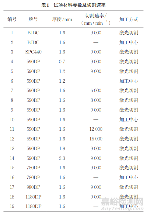 冷軋薄板經(jīng)激光切割后,在垂直于切割面的方向上產(chǎn)生一定深度的熱影響區(qū),如果不去除熱影響區(qū),可能會(huì)對(duì)冷軋?jiān)嚇拥牧W(xué)性能產(chǎn)生一定影響,目前人們尚不清楚熱影響區(qū)深度與激光切割工藝的關(guān)系,也未對(duì)激光切割工藝對(duì)冷軋薄板力學(xué)性能的影響提出過(guò)具體的評(píng)判標(biāo)準(zhǔn)。只是在GB/T 2975—2018《鋼及鋼產(chǎn)品 力學(xué)性能試驗(yàn)取樣位置及試樣制備》中推薦直徑或厚度小于15mm鋼材的激光切割加工余量應(yīng)為1~2mm,未對(duì)厚度為0.1~3mm的薄板和薄帶激光切割加工余量進(jìn)行進(jìn)一步說(shuō)明。為此,研究人員選取不同厚度、不同強(qiáng)度的冷軋薄板鋼材,對(duì)激光切割的熱影響區(qū)進(jìn)行深入研究,分析了熱影響區(qū)組織形貌的變化,以便判定熱影響區(qū)深度,通過(guò)拉伸試驗(yàn)確定了激光切割對(duì)力學(xué)性能的影響。通過(guò)該研究,對(duì)GB/T 2975—2018進(jìn)行驗(yàn)證與補(bǔ)充,同時(shí)為生產(chǎn)工藝的改進(jìn)提供了可靠參數(shù)。