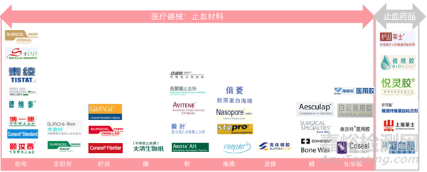 為了適應(yīng)多樣的出血場景,止血材料也衍生出了不同的形態(tài)和品規(guī),據(jù)不完全統(tǒng)計,止血材料品牌有近89個,常見的止血材料如下所示: