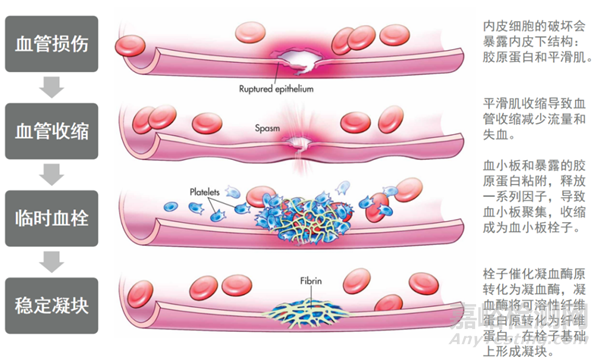 1.血管損傷:血管損傷出血,血管壁的破壞會暴露膠原蛋白和平滑??;