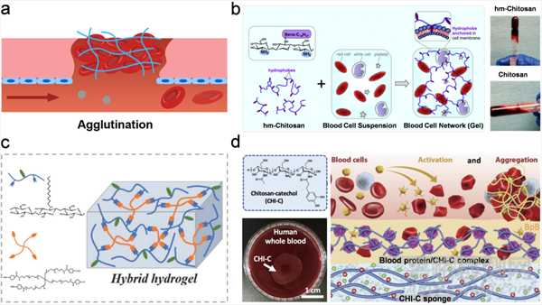 其中最具代表性的聚合物是殼聚糖,它能通過自身的正電荷吸引帶負電荷的紅細胞,從而導(dǎo)致血液凝集。