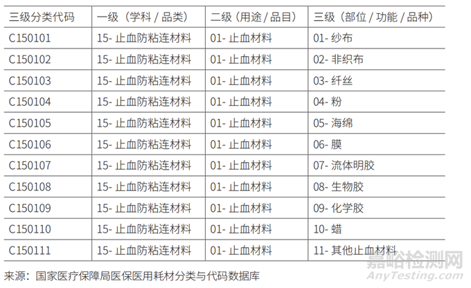 對于可吸收止血材料,醫(yī)保分類目錄“三級 分類碼”將其按照形態(tài)分為紗布、非織布、纖絲、粉、 海綿、膜、流體、生物膠、化學(xué)膠、蠟、其他止血材料。