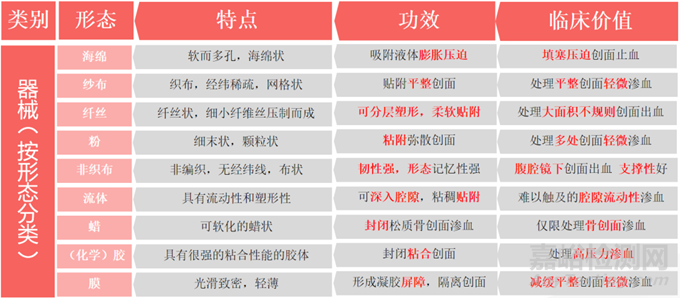 第三,止血材料的形態(tài)特點,決定了產(chǎn)品的使用功能,或者說,其應(yīng)用的場景差異性更為巨大。