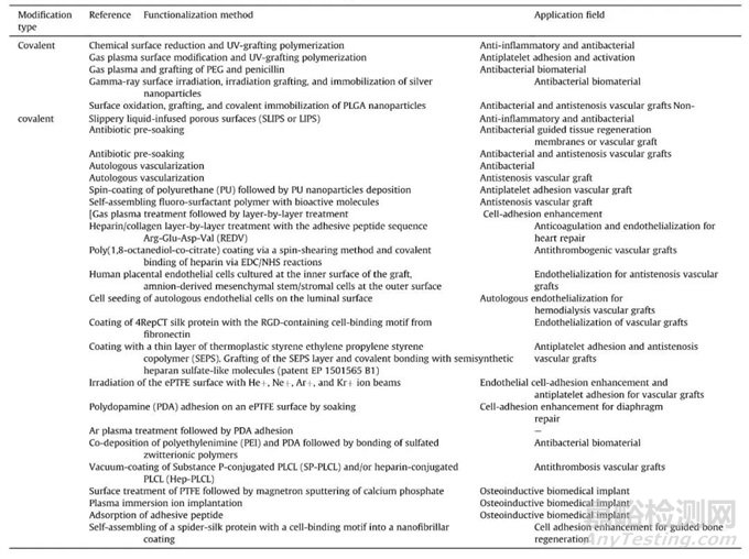 本文討論了通過幾種用于醫(yī)學(xué)目的的官能化策略來改善這些特性。綜述了共價鍵和非共價鍵,包括更具體的化學(xué)浸漬、化學(xué)表面改性、自體血管形成和細(xì)胞接種,這些是主要用于改善 ePTFE 性能的策略,并在本文中進(jìn)行了描述。