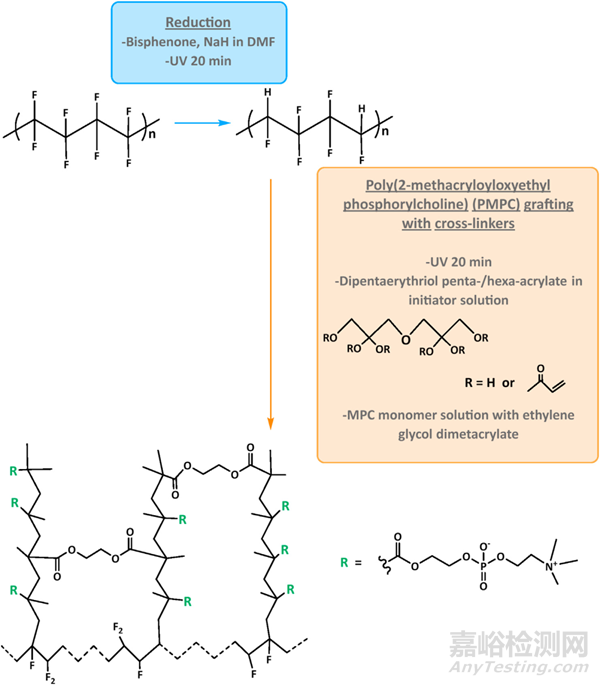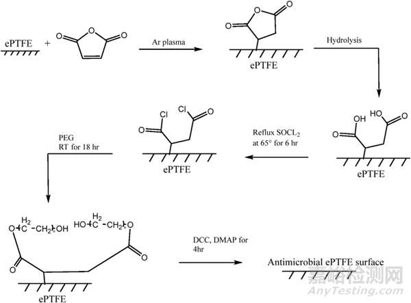 圖 2. 從 ePTFE 表面活化到接枝的化學(xué)路線。