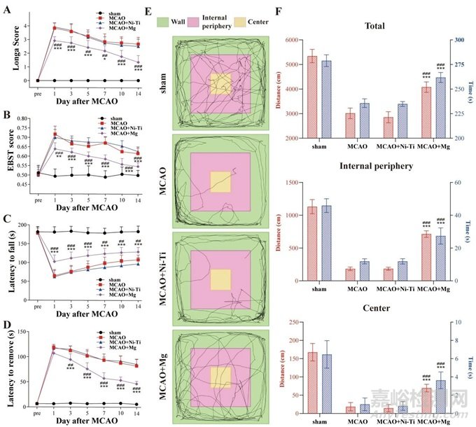 圖4 在體鎂絲對(duì)缺血性損傷的神經(jīng)保護(hù)作用