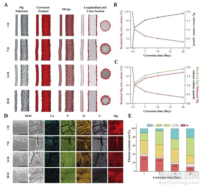 圖6 基于Micro-CT和SEM的鎂絲的體內(nèi)腐蝕評(píng)價(jià)