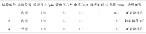 試驗采用ERESCO MF4型射線機,管電壓10~300 kV,管電流0.5~6 mA,有效焦點1 mm。平板探測器型號為CareView 750,像元尺寸120 μm,模/數(shù)轉(zhuǎn)換位數(shù)為16 bit。