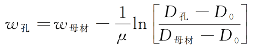根據(jù)公式(2),可通過測量母材和平底孔的灰度值(D母材和D孔)計算平底孔的厚度w孔,如公式(7)所示: