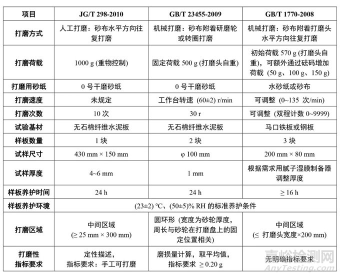 從表中可以看到,不同的標準在打膩子磨的適用環(huán)境、方式方法、材料選取、操作細節(jié)、性能判定等多個項目上均有所不同??傮w而言,JG/T 298-2010操作簡便但指標較為粗略定性,適用于手工操作的室內膩子打磨場景;GB/T 23455-2009側重于定量評價,適合精確度更高的室外機械打磨場景;GB/T 1770-2008的適用范圍則擴大到了多種涂膜,更側重于打磨性測試方法的規(guī)范化。