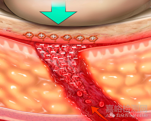 OneStop Vascular主要由殼聚糖組成,殼聚糖是一種源自蝦殼的天然生物相容性多糖。殼聚糖的正電荷分子會(huì)吸引帶負(fù)電荷的紅細(xì)胞,類似于磁鐵。當(dāng)紅細(xì)胞被吸引到貼片上時(shí),促使血液快速凝固。