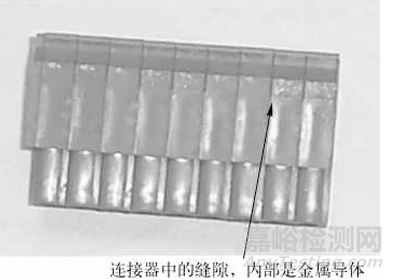 研究測(cè)試中所用的連接器之后, 發(fā)現(xiàn)此連接器外塑料表面到其內(nèi)部導(dǎo)體之間的距離小于3 mm, 如下圖 所示: