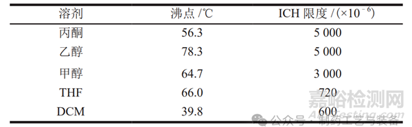 表1 噴霧干燥工藝中常用的有機(jī)溶劑及其沸點(diǎn)和ICH限度
