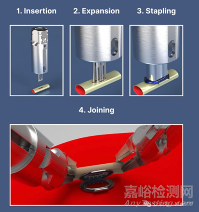 吻合釘上尖銳倒刺可以牢牢定在血管上,可以保證固定處不泄露。