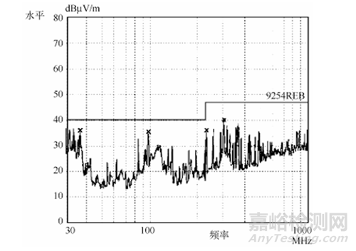 某微型計(jì)算機(jī)的輻射發(fā)射測(cè)試結(jié)果如下圖所示: