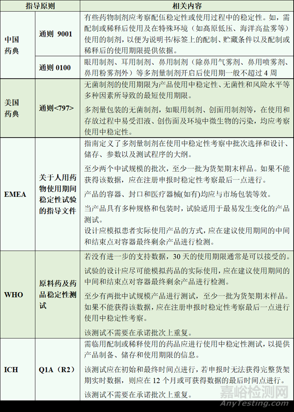 但是不管這件工作有多艱難,監(jiān)管部門(mén)還是在積極努力的不斷更新現(xiàn)有的指導(dǎo)方針,不斷具象化使用中穩(wěn)定性的試驗(yàn)設(shè)計(jì)方案,為使用中穩(wěn)定性研究的開(kāi)展提供更加明確的指導(dǎo)。藥品使用中穩(wěn)定性相關(guān)指導(dǎo)原則見(jiàn)下表。