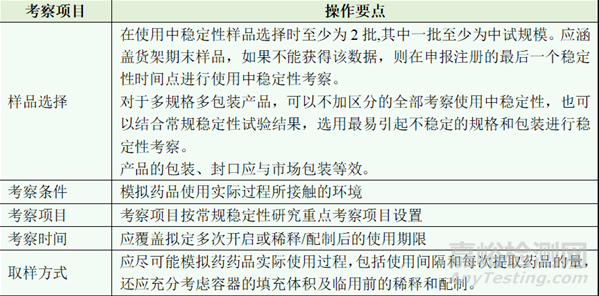 表3 產(chǎn)品使用中穩(wěn)定性方案設(shè)計(jì)要點(diǎn)