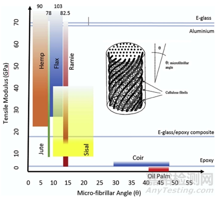 (2)比強(qiáng)度:由于天然纖維的低密度,通常與玻璃纖維復(fù)合材料相當(dāng)。