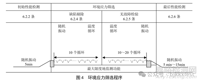 篩選過程中應(yīng)對(duì)產(chǎn)品的功能和性能進(jìn)行監(jiān)測(cè),在最長(zhǎng) 20個(gè)循環(huán)內(nèi)只要連續(xù)10個(gè)循環(huán)不出現(xiàn)故障,產(chǎn)品即通過了溫度循環(huán)篩選;在最長(zhǎng) 15min 內(nèi)連續(xù)5min 不出現(xiàn)故障,產(chǎn)品即通過了隨機(jī)振動(dòng)篩選。