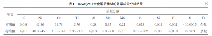 Incoloy901合金是一種Ti元素含量較高的時效強化高溫合金,且Incoloy901合金中添加了較多的Cr、Mo元素,以提高其高溫性能,使其在600~700℃條件下?lián)碛蟹浅?yōu)越的長期持久承載能力,同時具備一定的抗高溫環(huán)境氧化和耐高溫腐蝕性能。合金的組織以γ為基體,以γ'為沉淀硬化相。該時效強化合金具有較高的屈服強度與持久強度,用于制造工作溫度達650℃的航空發(fā)動機和汽輪機等零部件。