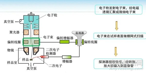 包括電子槍、電磁透鏡和偏轉(zhuǎn)線圈等,負責(zé)產(chǎn)生、加速和聚焦電子束,以及控制電子束在樣品表面的掃描。