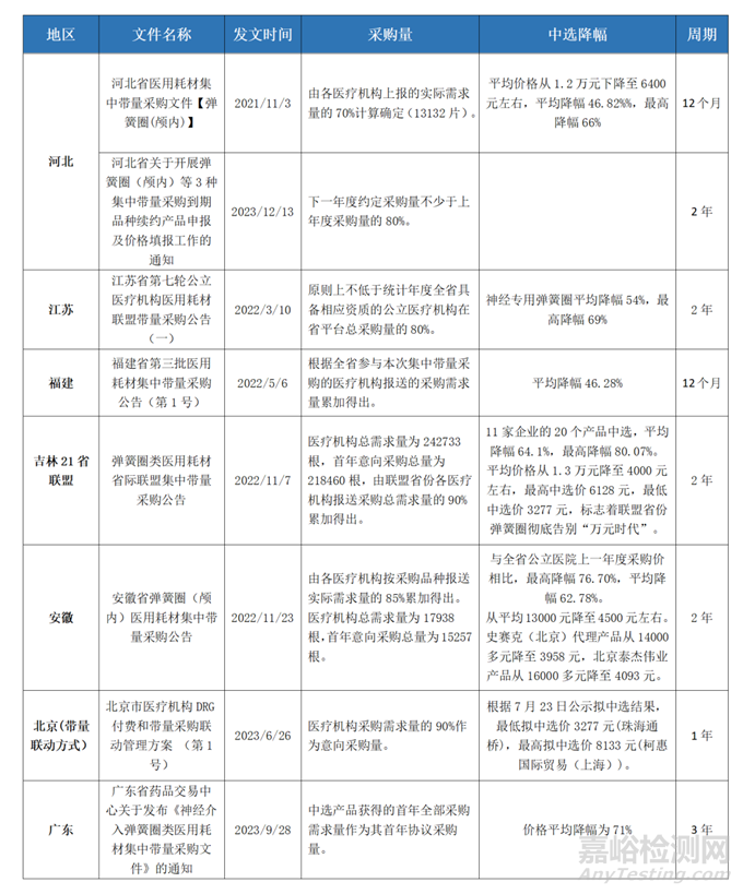 作為一種高值耗材,在集采之前,無論是進(jìn)口產(chǎn)品還是國內(nèi)品牌,彈簧圈的價格都相對較高。但從2021年彈簧圈開始落地集采,到如今幾乎覆蓋了全國市場,其單價也從 1.2 萬降至 3277 元。2024年3月21-22日,四川省、上海市接連公布了《關(guān)于開展京津冀“3+N”聯(lián)盟彈簧圈類醫(yī)用耗材歷史采購數(shù)據(jù)及采購需求量填報工作的通知》,彈簧圈新一輪大規(guī)模集采開始報量。