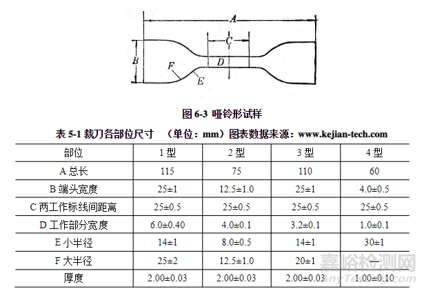 1. 硫化完成的是試片,在室溫下停放6小時(shí),選用標(biāo)準(zhǔn)裁刀切出啞鈴型試樣,裁刀分為4種類型,其中1型為通用型,根據(jù)膠料的具體情況選用適當(dāng)好的裁刀。裁刀各部分具體尺寸見(jiàn)圖6-3和表5-1。