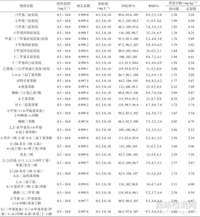 硅氧烷類化合物分子鏈具有彈性和柔性,用作降低塑料的硬度,提高其柔韌性,并且具有較強的潤滑性和耐磨性,可以有效減少塑料薄膜表面的摩擦阻力,從而提高塑料的耐磨性和潤滑性;烷基酚類化合物可用于塑料的增塑劑,也可能是塑料加工過程中的中間體或副產(chǎn)物;UV抗氧化劑類化合物常用作抗氧化劑以增強塑料的穩(wěn)定性;磷酸酯類化合物可以用作塑料和橡膠的阻燃劑和增塑劑。鑒于塑料制品有以上添加劑的風險,筆者建立GC-MS快速測定塑料制品中28種高度關(guān)注物質(zhì)的方法,包括10種硅氧烷類、6種烷基酚類、9種UV抗氧化劑和3種磷酸酯類高關(guān)注物質(zhì)。