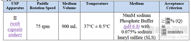 FDA對于企業(yè)擬定的溶出方法是接受的,如下: