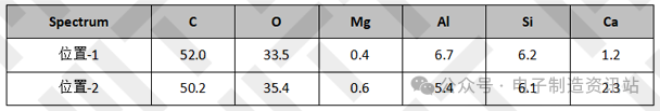 分離界面主要含有C、O、Al、Si及微量的Ca、Mg元素,未發(fā)現(xiàn)異常元素存在,排除污染對(duì)分層爆板的影響。