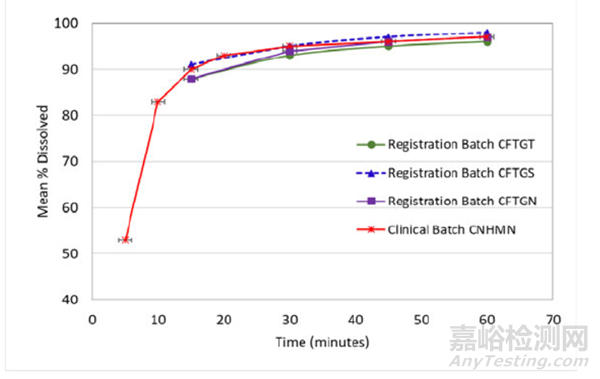 此外,基于臨床批次的平均溶出曲線數(shù)據(jù)(如Figure 3.2.P.5.6-1 and Table 3.2.P.5.4-4),F(xiàn)DA推薦的溶出標準是合適的。