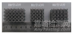 圖 3 H0、H1和H2型BCC點陣試樣的宏觀形貌
