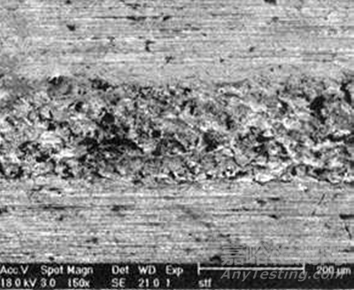 磨料磨損可能是磨粒對摩擦表面產(chǎn)生的切削作用、塑性變形和疲勞破壞作用或脆性斷裂的結(jié)果,還可能是它們綜合作用的反映,并以某一損壞方式為主。磨粒磨損的主要特征是摩擦面上有明顯犁皺形成的溝槽或磨屑,如圖6所示。