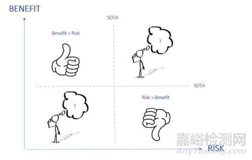 獲益和風(fēng)險(xiǎn)通常不屬于同一個(gè)評(píng)價(jià)維度。這就好比,比較蘋(píng)果和柑橘??陀^地比較獲益與風(fēng)險(xiǎn)往往并不容易。制造商必須綜合已有信息,回答以下問(wèn)題: