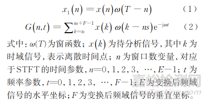 研究人員采用的時頻分析方法基于短時傅里葉變換,選擇合適的窗函數(shù)以分割待處理的原始信號。隨著窗函數(shù)的不斷移動,對截獲的時域信號每一小段進行傅里葉變換,使每一時刻的時域信號對應于頻域信號。